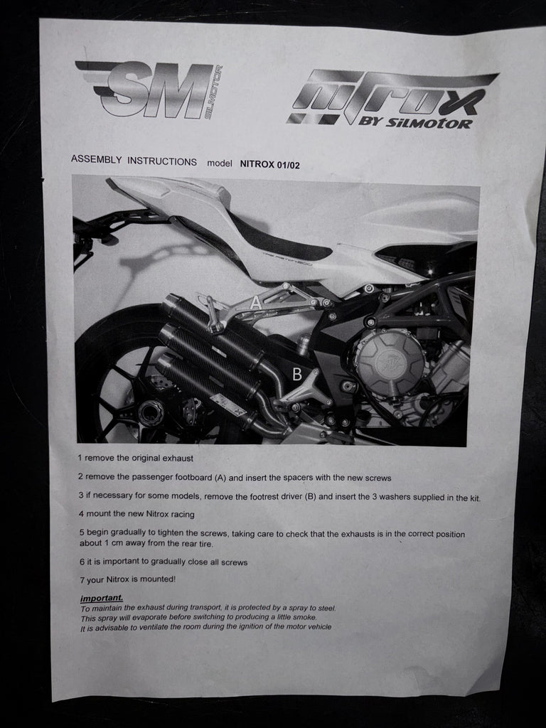 Fits all MV Agusta Brutale 675 & 800 three cylinders